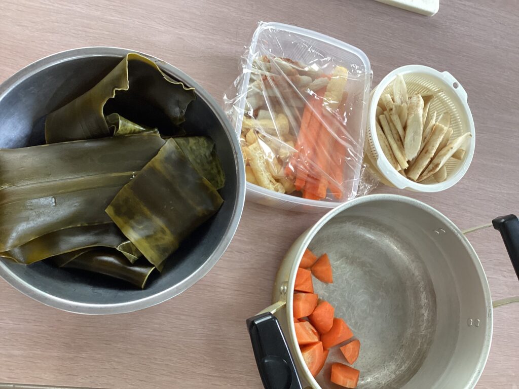 皆様、家にいる時から作っていたようで、手際よく昆布巻を作ってくださいました👏